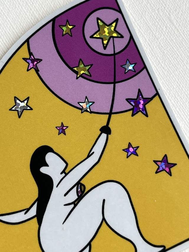 You can touch the stars. You can touch the stars. You can touch the stars. And in case you have some moments of doubts, this sticker is for you. It's bright yellow and features inspiring glittering stars.